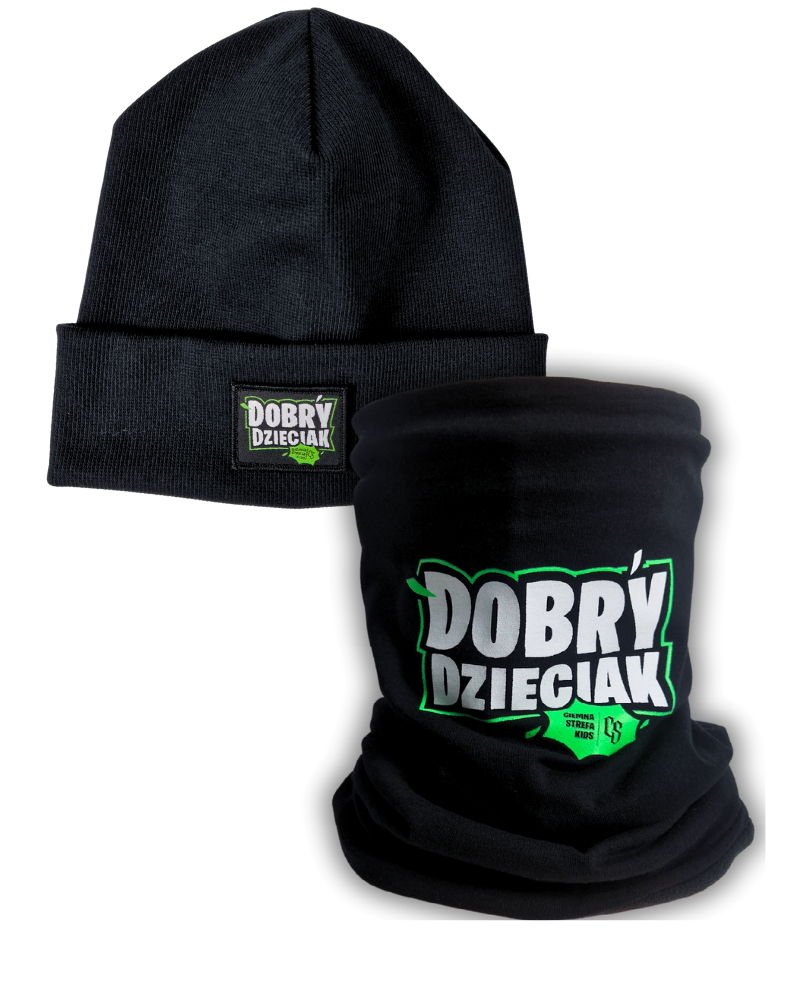 KOMPLET CZARNY DOBRY DZIECIAK/ CZAPKA + KOMIN