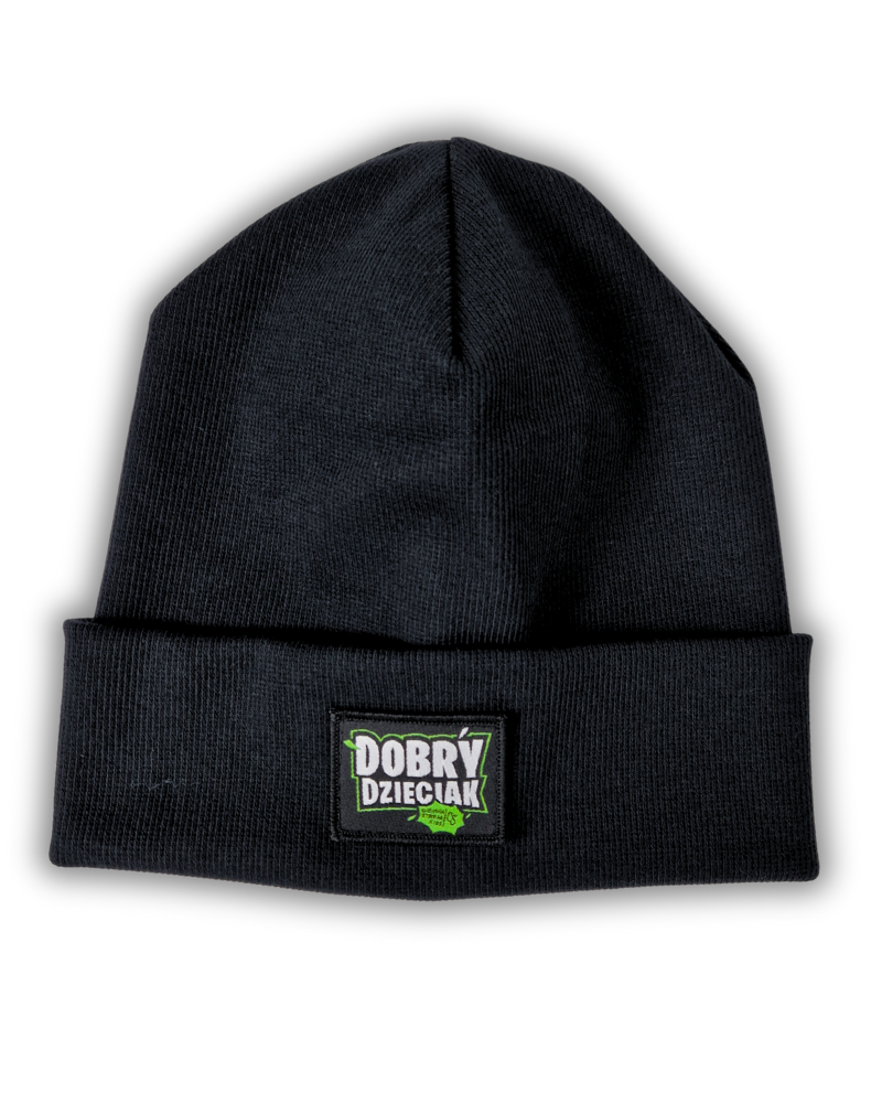 • Z przodu wywinięcie, a na nim żakardowa naszywka z logo DOBRY DZIECIAK