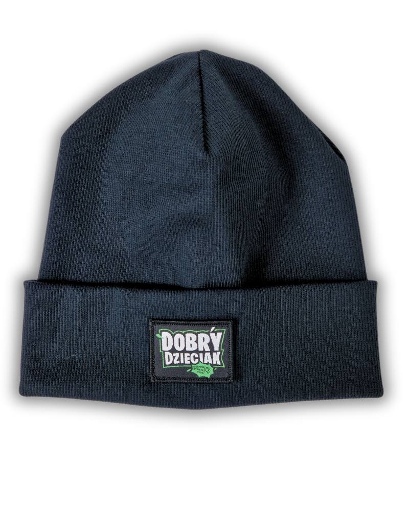 • Z przodu wywinięcie, a na nim żakardowa naszywka z logo DOBRY DZIECIAK