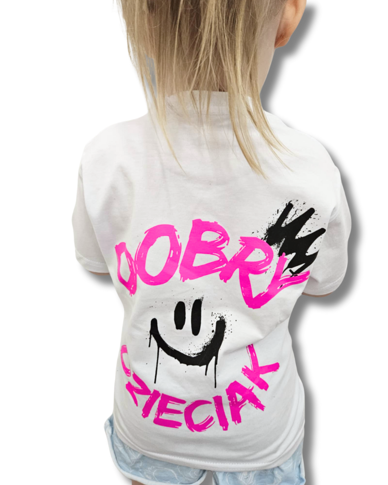 T-SHIRT DOBRY DZIECIAK SMILE - BIAŁA/RÓŻ