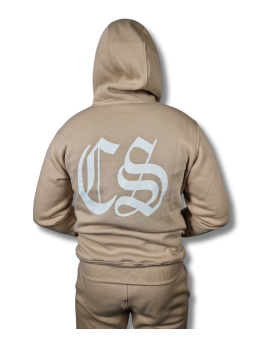 Bluza kangurka w kolorze jasnego beżu z dużym logo CS HERB...