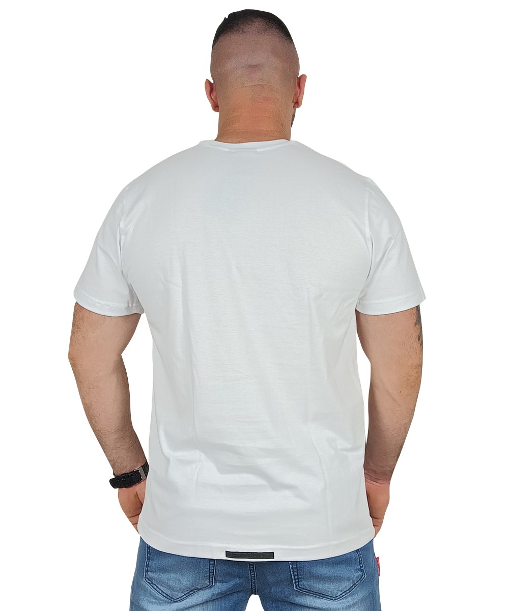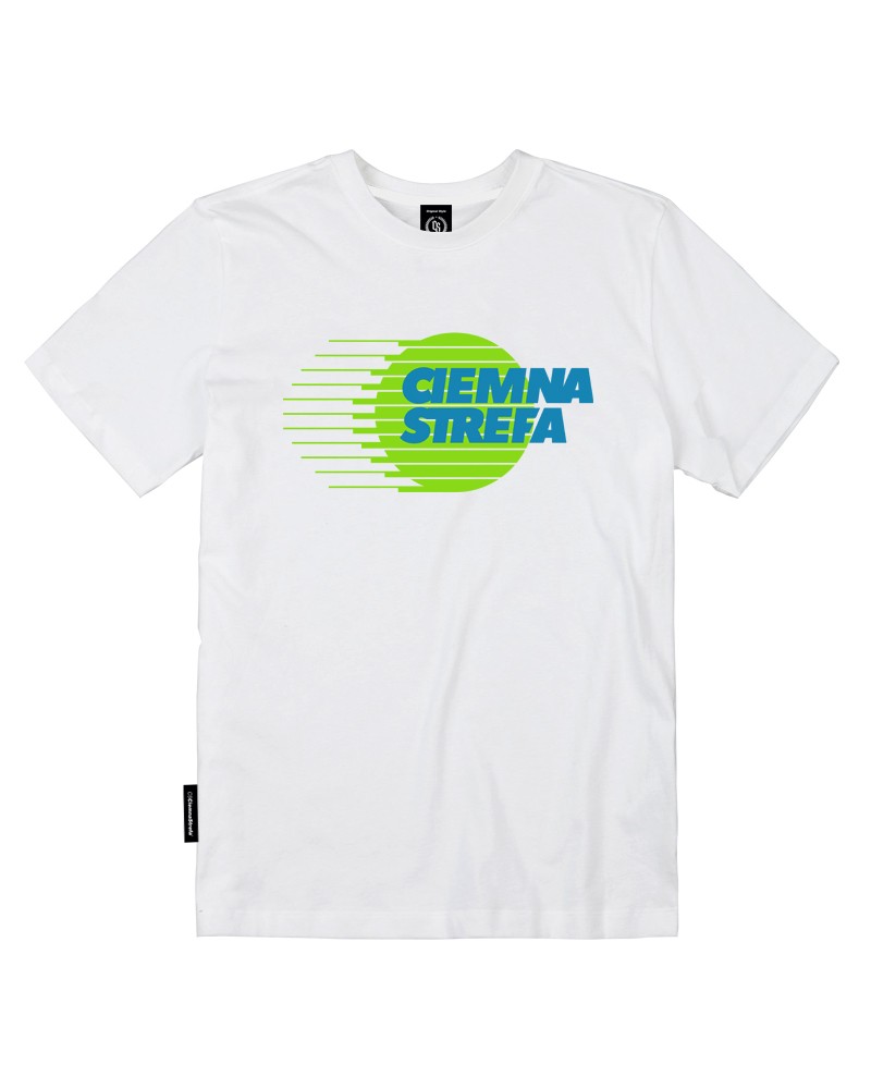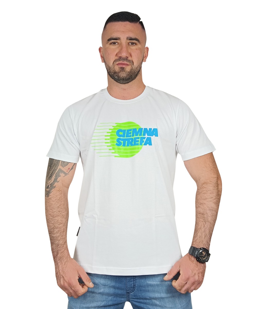 T-SHIRT BIAŁY CIEMNA STREFA GLOB / NEON-NIEBIESKI