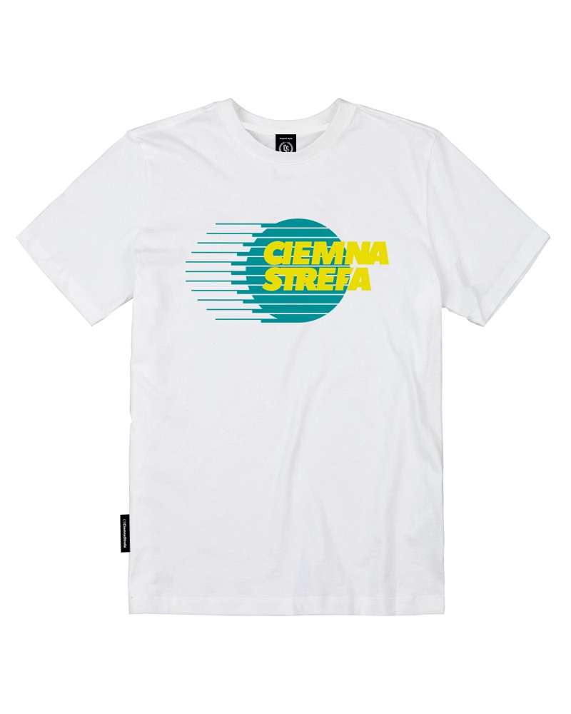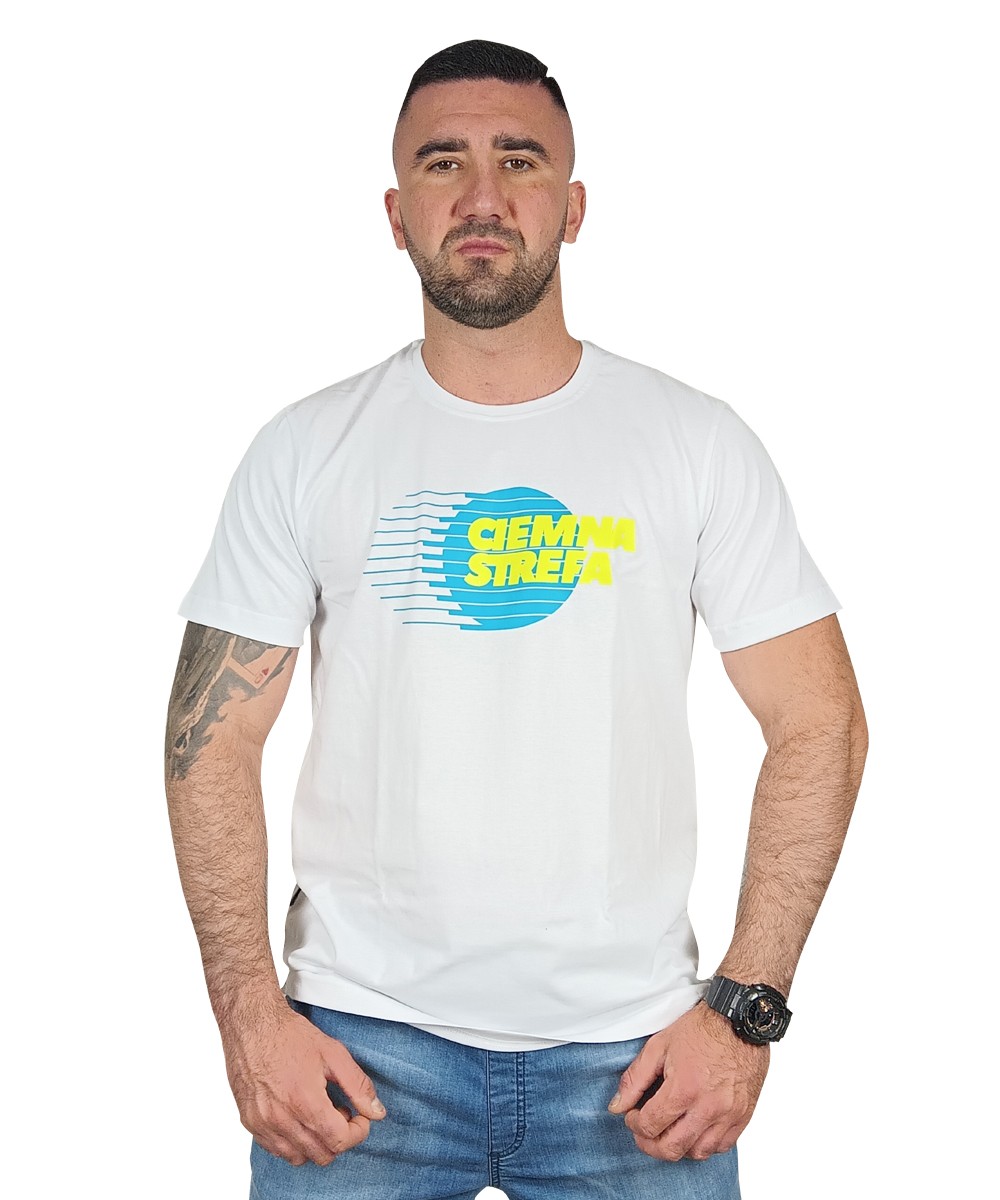 T-SHIRT BIAŁY CIEMNA STREFA GLOB / TURKUS-ŻÓŁTY