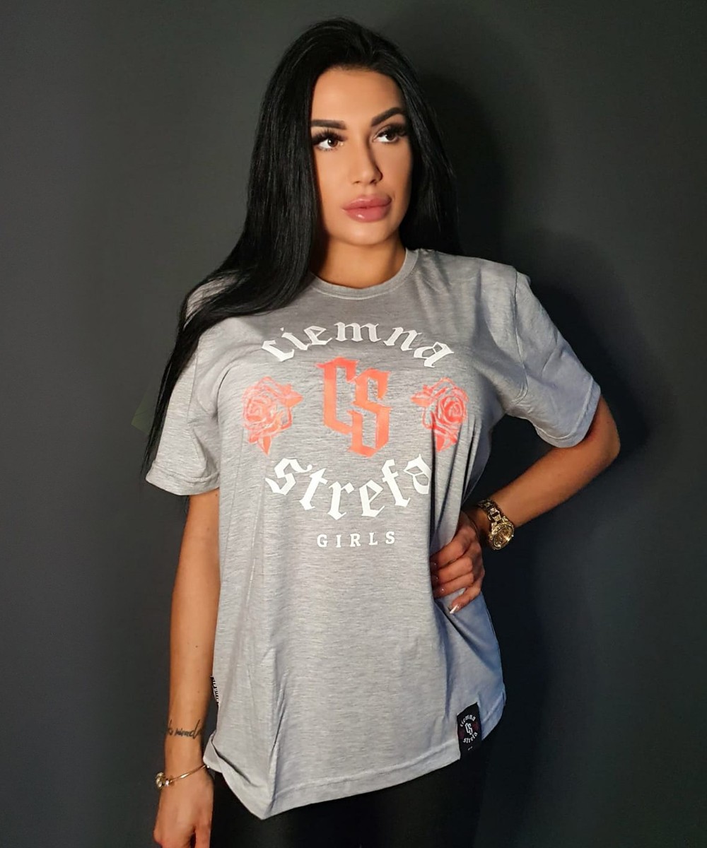 T-SHIRT DAMSKI MELANŻ CIEMNA STREFA ROSES - POMARAŃCZ