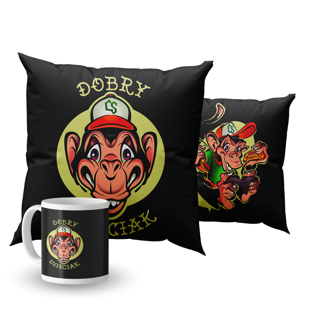 ZESTAW DOBRY DZIECIAK ANIMALS MAŁPA POSZEWKA(BEZ WKŁADU) + KUBEK CERAMICZNY