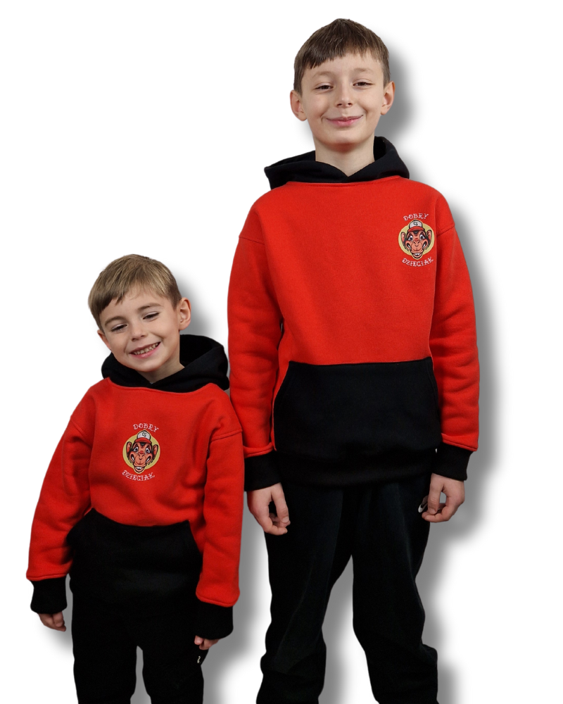 • APLIKACJE WYKONANE METODĄ DTF, MAŁY Z PRZODU DUŻY NA PLECACH