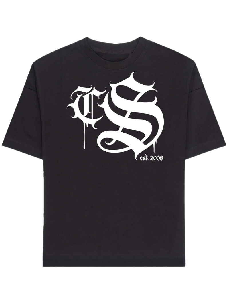 T-shirt w kolorze czarnym z dużym logo CS GOTYK w stylu Chicano wykonany metodą sitodruku