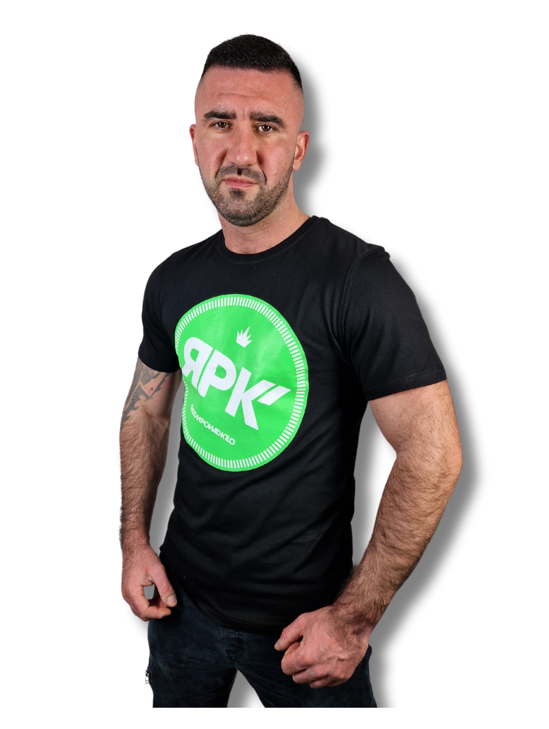 T-shirt w kolorze czarnym z klasycznym logo RPK KÓŁKO, wykonanym metodą sitodruku