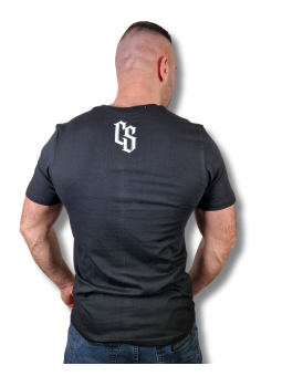 Z tyłu na karku małe logo CS, również wykonany metodą sitodruku.